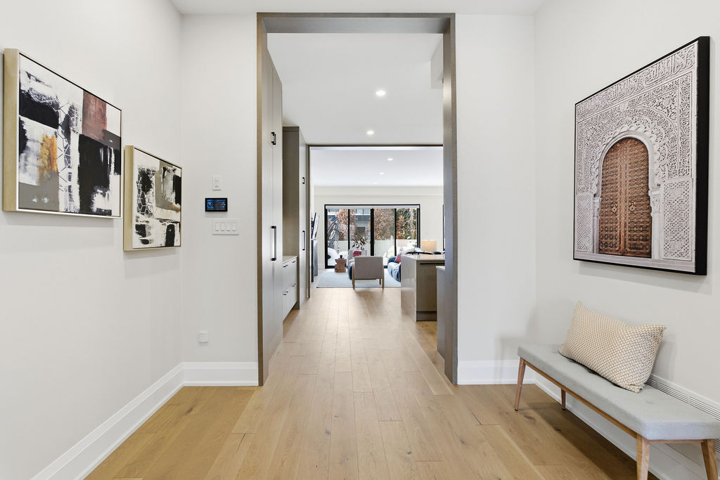 Just steps from the lake in the heart of vibrant Port Credit, this four-year-old custom white stone semi-detached home offers a rare blend of luxury, warmth, and thoughtful design. From the moment you enter the grand foyer, the home feels welcoming and intuitive, featuring a custom bench and a wall of built-ins that set the tone for the craftsmanship found throughout. The super-wide, open-concept main floor is both elegant and inviting, where the living, dining, and kitchen space flows effortlessly together around a beautifully framed fireplace and a wall of glass that opens to the stone patio and sun-filled backyard.